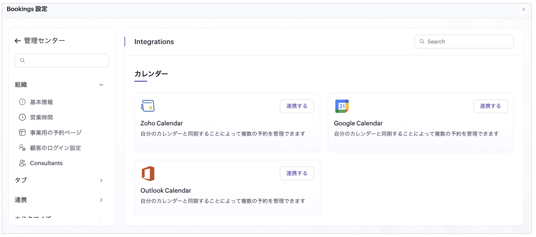 Zoho Bookingsは、Google カレンダー、Microsoft 365(Outlook)、Zoho Calendarと同期できます。すでに予定が入っている時間帯は「予約不可」としてブロックできるため、ダブルブッキングを防げます。また、予約が入ると内容もカレンダーへ自動反映されるので、手動で予定を転記する必要がなく、入力ミスや入力漏れなどのリスクも抑えられます。