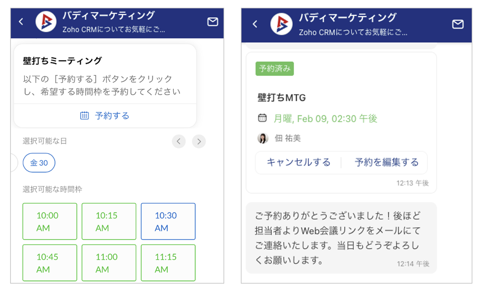 【活用例②】Zoho SalesIQ連携で、会話の流れから予約へつなげる