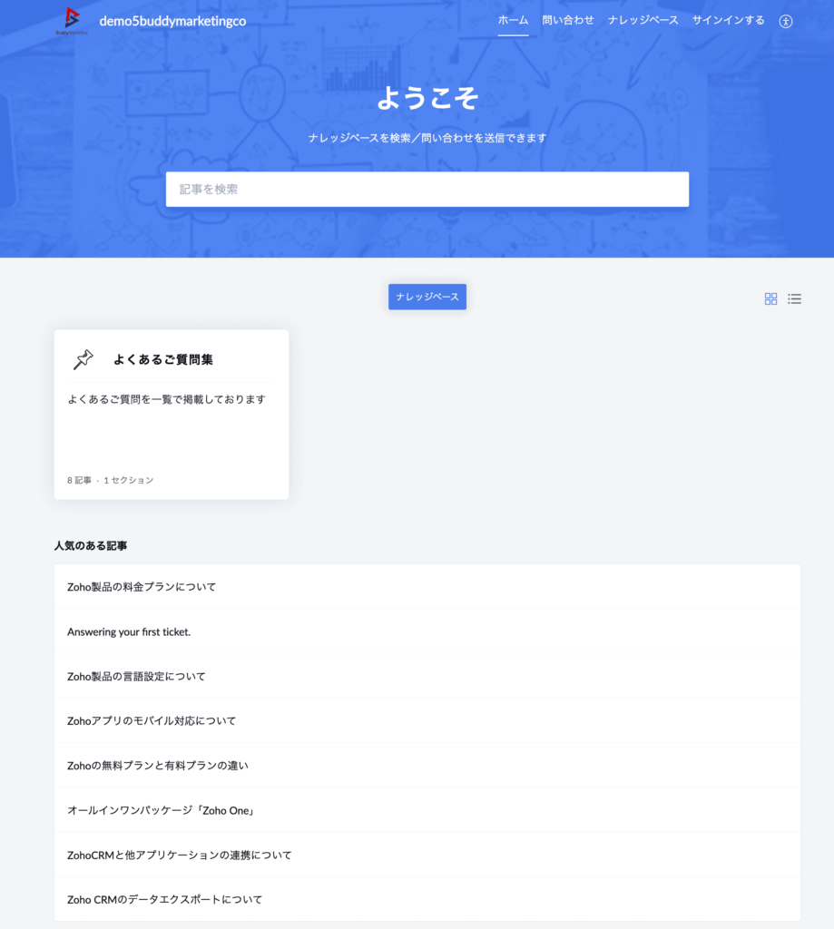 Zoho Deskのナレッジベース機能を使えば、FAQ記事や解決手順を公開し、顧客が自分で答えにたどり着ける仕組みを作れます。社外向けだけでなく、社内のサポート手順書としても機能します。新しく加わった担当者が「この問い合わせにはどう対応するのか」を自分で調べられる環境が整うため、引き継ぎの負荷が大幅に減ります。