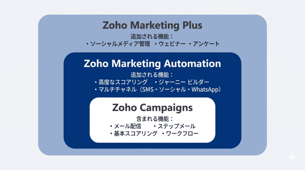 Zoho Campaigns・Zoho Marketing Plusとの棲み分け